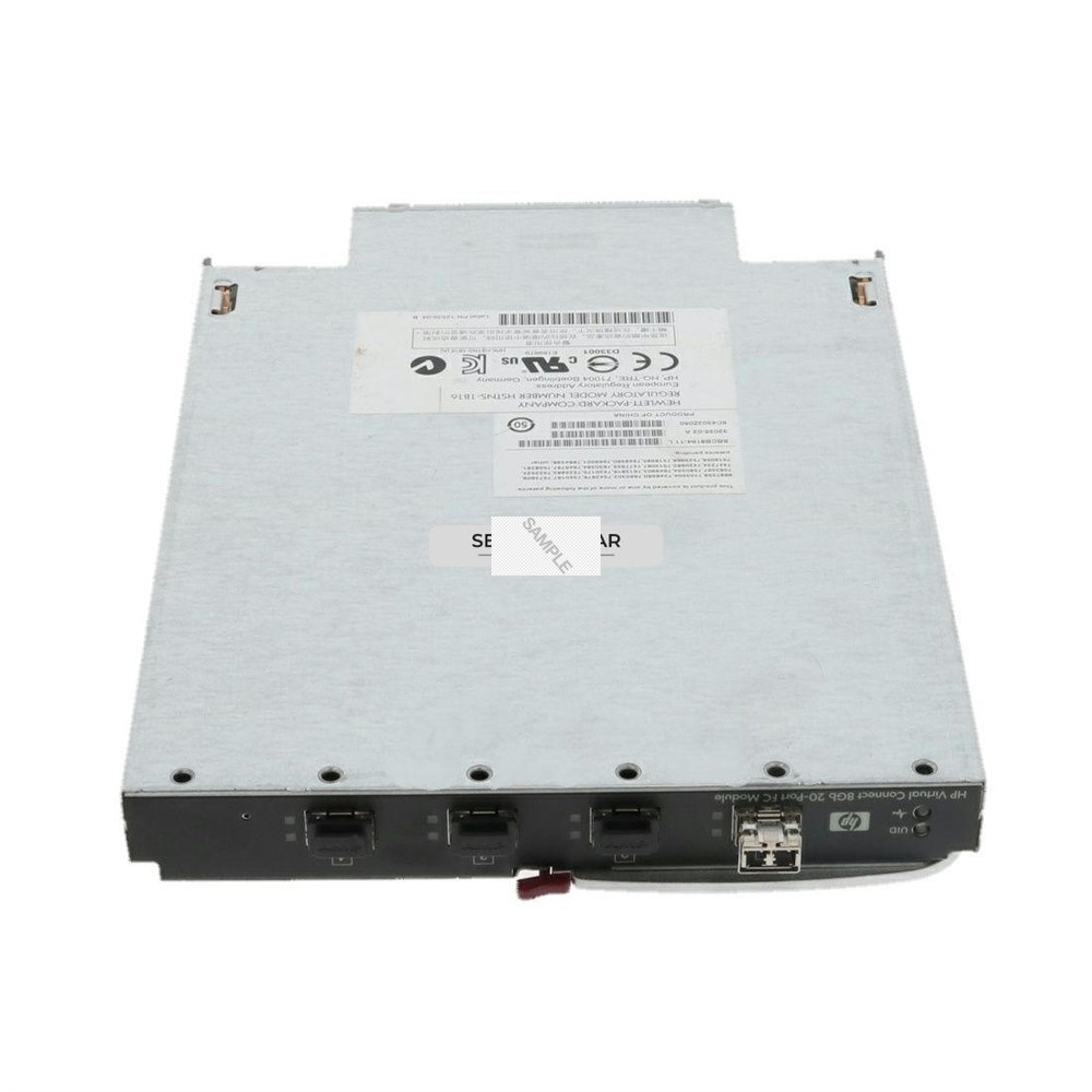 The HP Virtual Connect 8Gb 20-port Fibre Channel Module for c-Class BladeSystem offers enhanced virtual connect capabilities, allowing up to 128 virtual machines running on the same physical server to access separate storage resources. Provisioned storage resource is associated directly to a specific virtual machine—even if the virtual server is re-allocated within the BladeSystem. Storage management of virtual machines is no longer limited by single, physical HBA on a server blade. SAN administrators can now manage virtual HBAs with the same methods and viewpoint of physical HBAs. Virtual Connect 8Gb 20-port Fibre Channel Module is the simplest, most flexible connection to your SAN fabrics. The HP Virtual Connect 8Gb 20-port Fibre Channel Module unravels server connections by cleanly separating the server enclosure from SAN, makes SAN fabrics easier to layout by reducing cables without adding switches to the domain, and allows you to change servers in just minutes, not days. - Ease of Operations and Deployment. - HP Virtual Connect 8Gb 20-port Fibre Channel Module for c-Class BladeSystem is compatible with all NPIV capable switches and requires minimal management to deploy. HP Virtual Connect 8Gb 20-port Fibre Channel Module for c-Class BladeSystem appears as a pass-through device to the network and removes all interoperability concerns and complicated switch management. - Enterprise class performance and availability. - The Virtual Connect 20-Port Fibre Channel module combines the simplicity of a pass-through module with the high performance of a 8Gb switch. Maximum uptime with dual modules and automatic fail-over. Full any-to-any server to storage mappings for complete fail-over capability across server blades and hot sparing. Intelligent Uplink allocation optimizes mappings of Server Side NPIV assignments and provides automated fail-over protection. Backward compatibility and investment protection. - Security and management. - No extra software needed for module configuration and security via the embedded Virtual Connect Manager on the Ethernet module. Role base account administration.