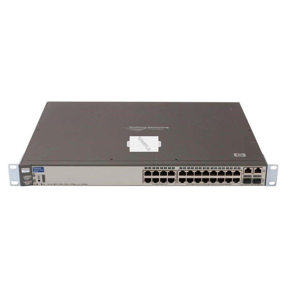 Hewlett Packard Enterprise ProCurve 2626. Switch type: Managed, Switch layer: L3. Basic switching RJ-45 Ethernet ports quantity: 24, Console port: RS-232. Full duplex. MAC address table: 8000 entries, Switching capacity: 9.6 Gbit/s. Networking standards: IEEE 802.1D,IEEE 802.1p,IEEE 802.1Q,IEEE 802.1s,IEEE 802.1w,IEEE 802.3,IEEE 802.3ab,IEEE...