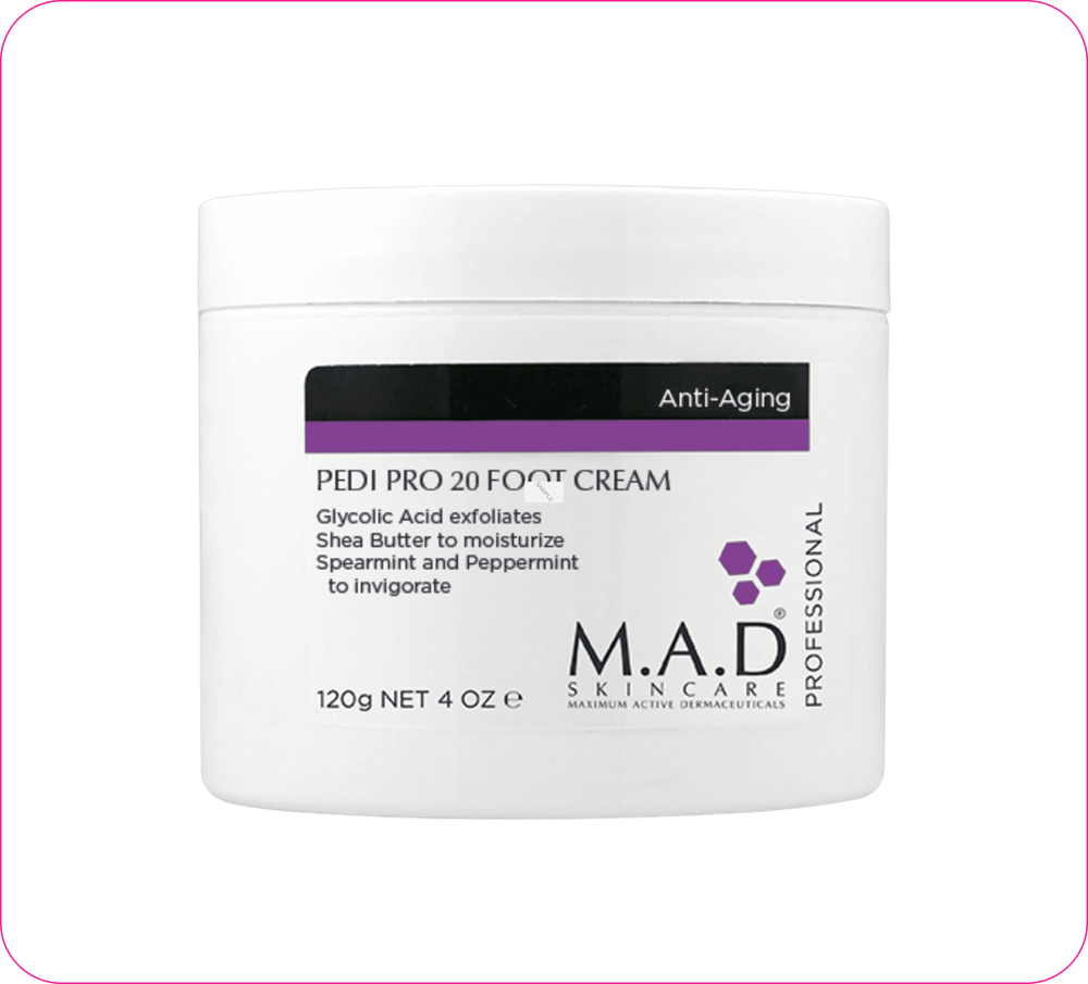 Высококонцентрированный крем для ног, помогает в кратчайшие сроки справится с проблемой трещин в области пяток, мозолями, натоптышами, сухостью и зудом в области стоп, делая их более мягкими и гладкими. Сочетание гликолевой кислоты 28%, масел и растительных экстрактов способствует нормализации процесса ороговения, увлажняет и питает кожу стоп, делая их нежными и придавая им легкость, способствует заживлению трещин, дезодорирует и освежает.